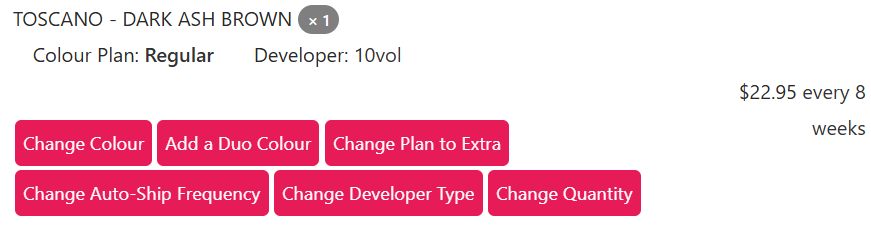 STEP 3: If you would like to change your colour, plan or Auto-Ship frequency, please click on the buttons as shown below:
